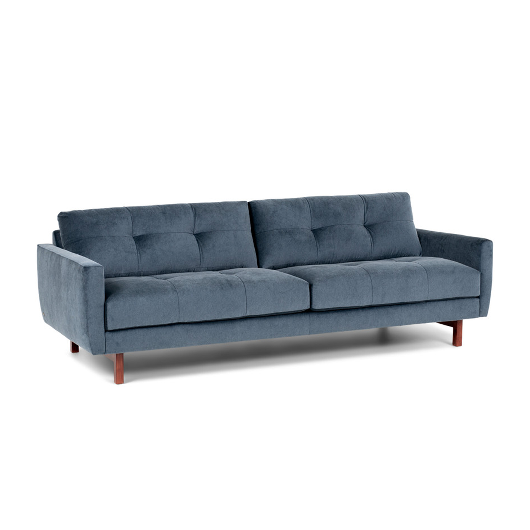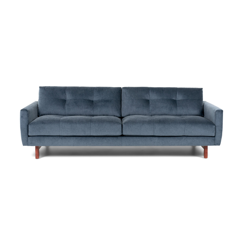 Choose from plain or tufted cushions for a unique look. Carmet’s low-profile beauty is accentuated by its plush, sloping waterfall detail on the interior of the arm.