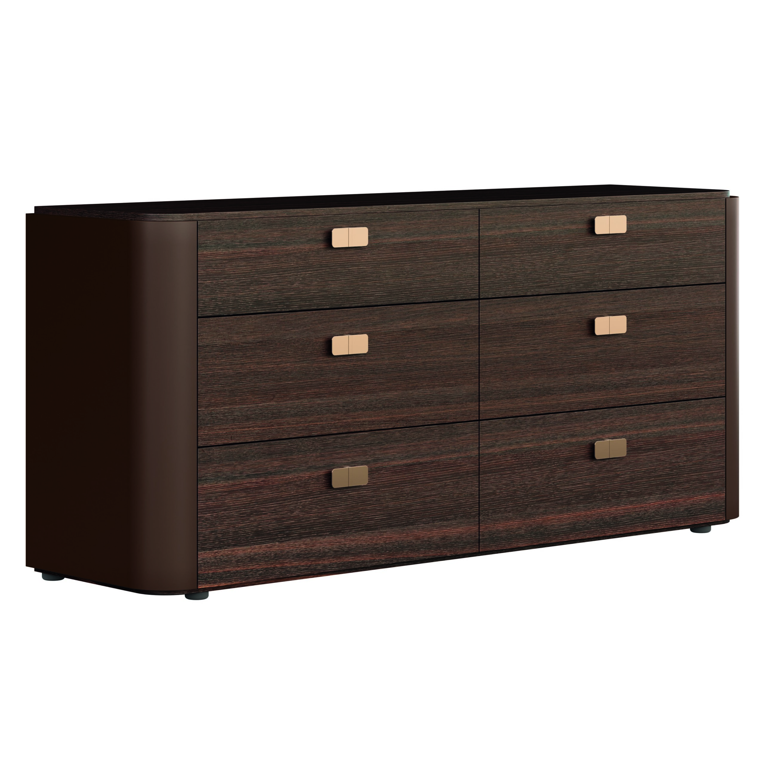 The Appia Dresser combines spacious storage with a refined, architectural design. It features six smooth full-extension drawers, providing plenty of room while maintaining a sleek, minimal exterior. The drawer fronts reflect the bed’s vertical groove detailing, ensuring a cohesive look throughout the collection.