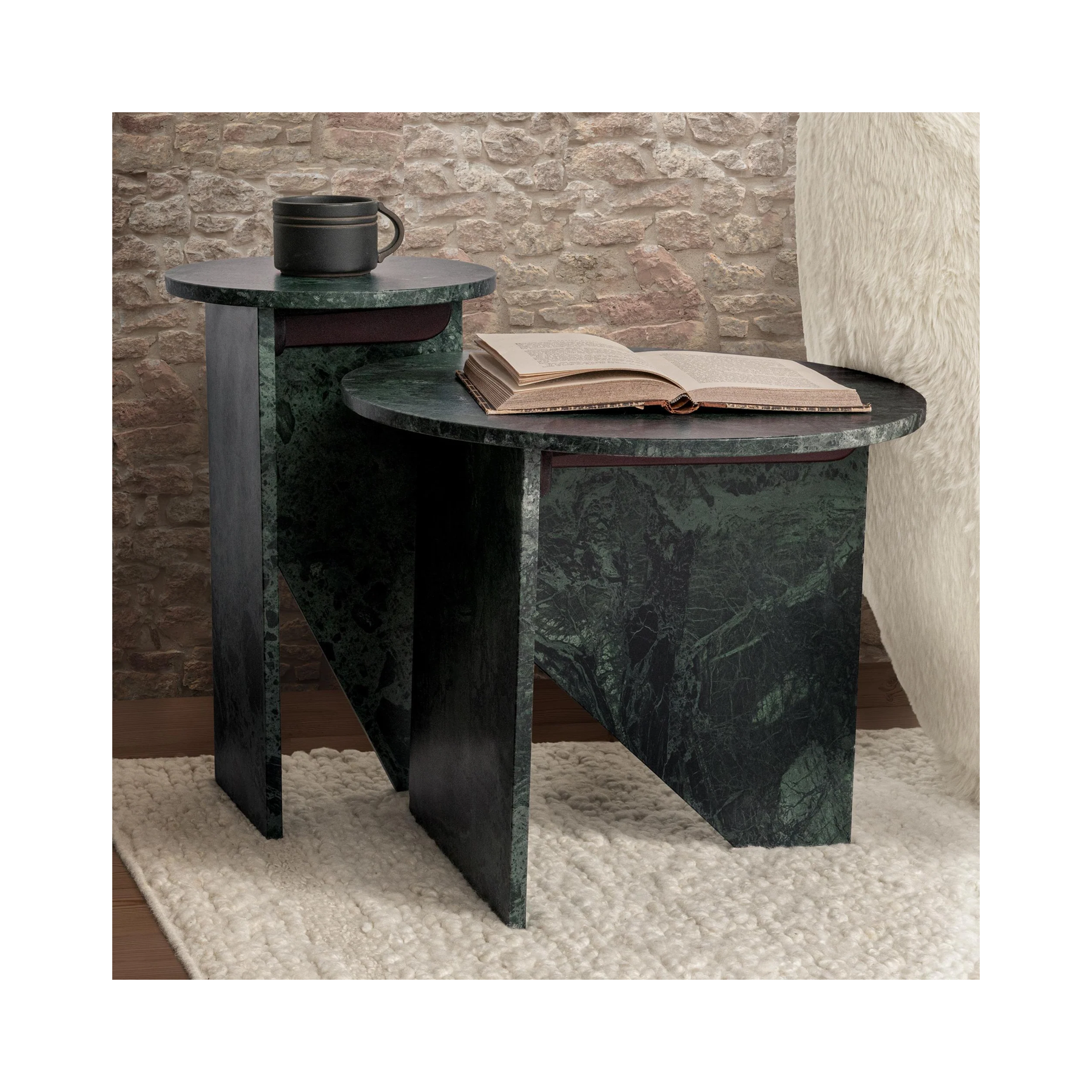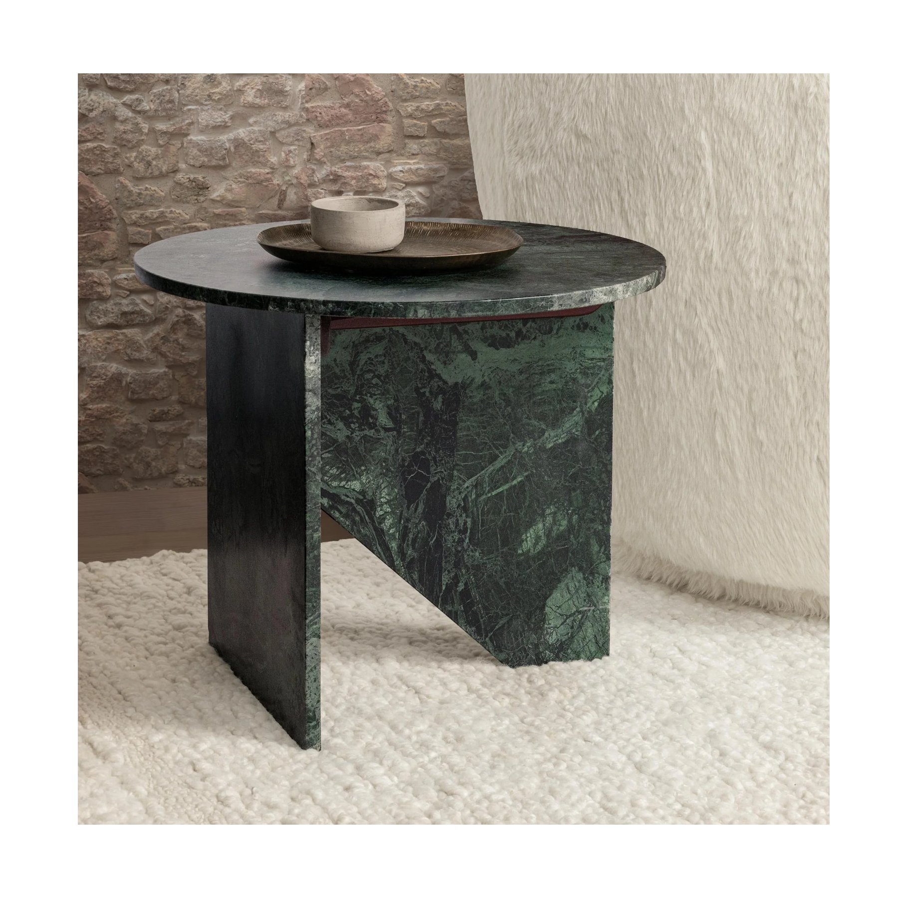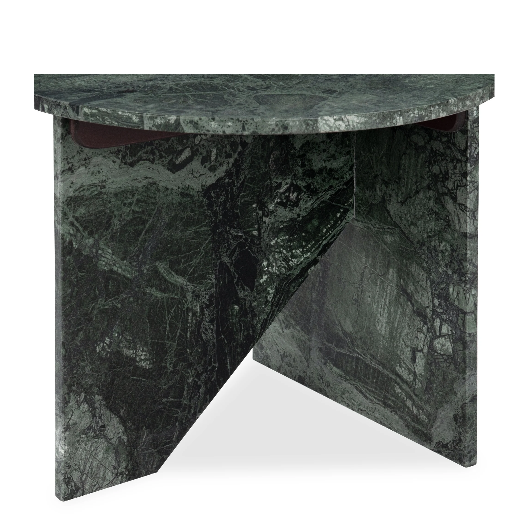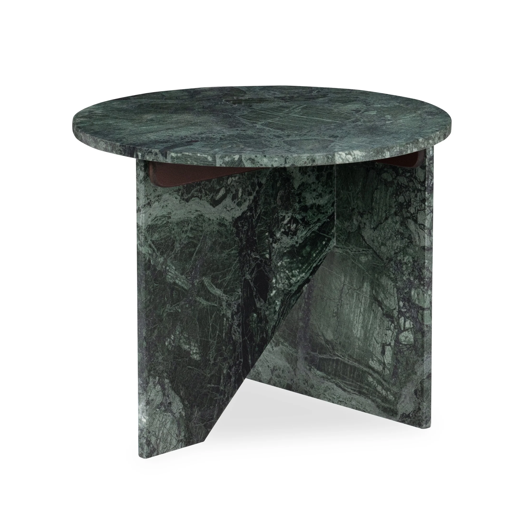 At once classic and contemporary, the Briley Accent Table lends a timeless look in your living space. Made entirely of solid marble, Briley is veined in Green Emerald for one-of-a-kind beauty. An angular base of intersecting planes supports the circular top, creating a crisp geometric composition.