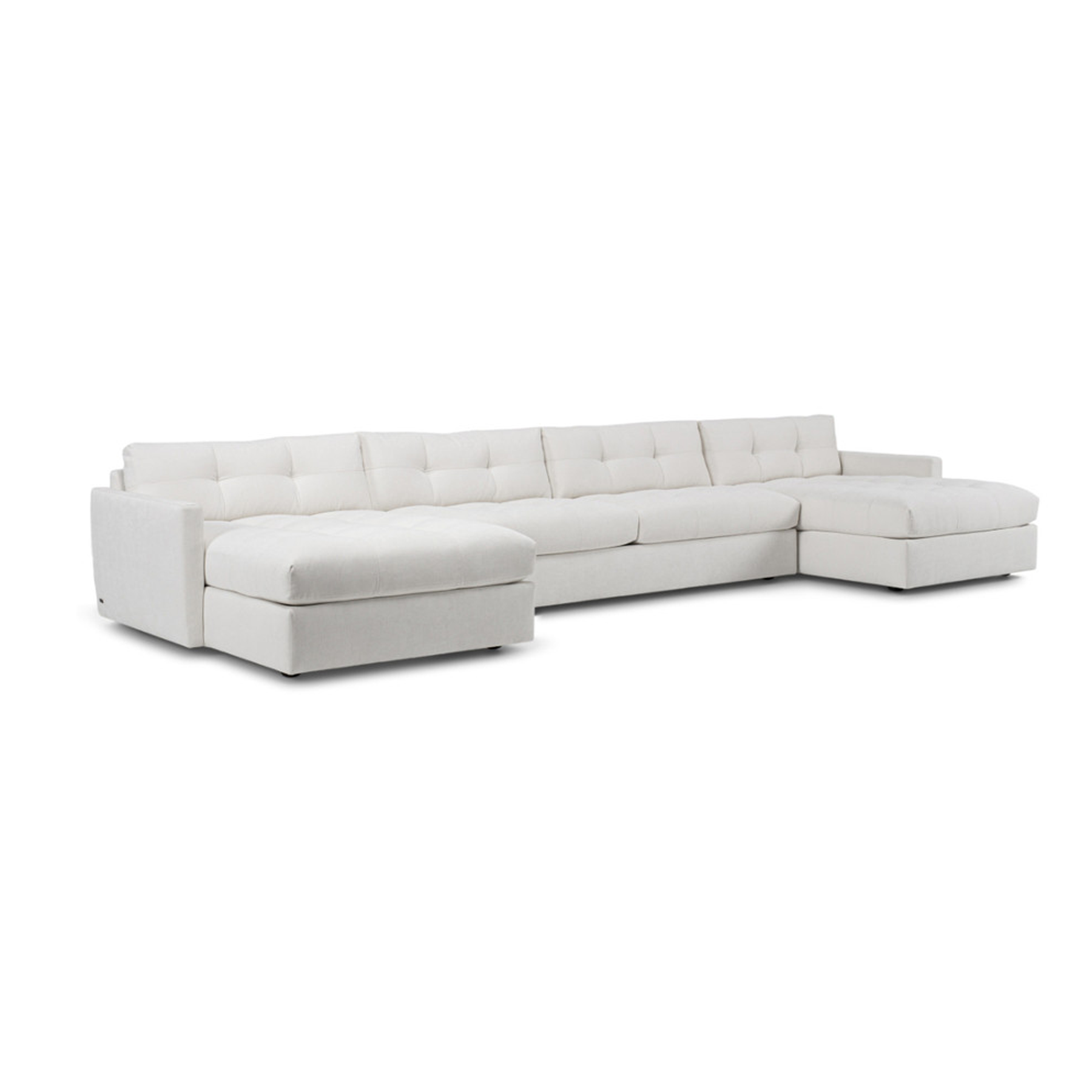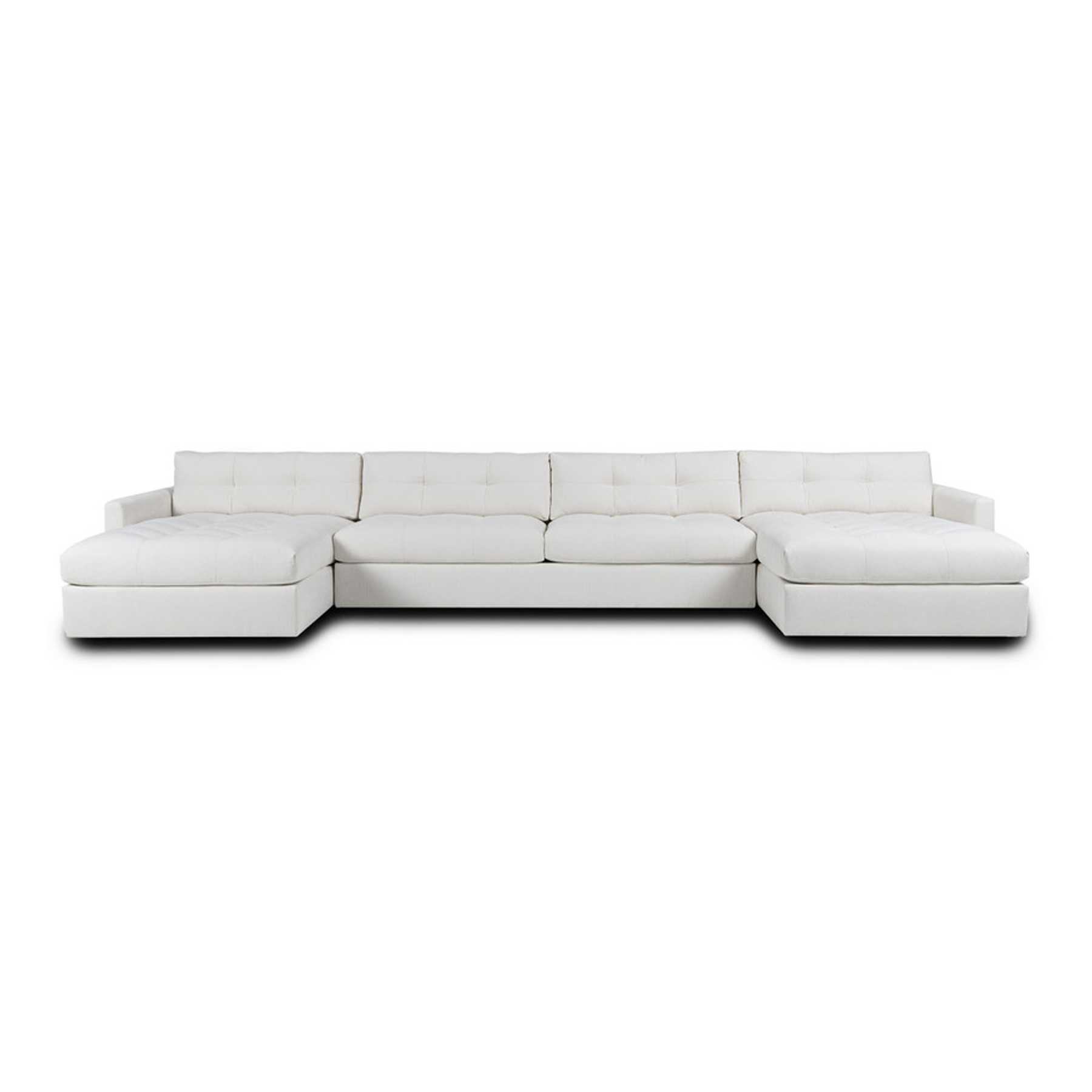 From every angle, this sectional has both style and poise. Carmet’s sleek track arms are about the only things standard on this sectional. Choose tufted or plain back seat cushions to change the look and feel of this deep-seated sectional. Choose from our assortment of in-stock upholstery materials to create the u-or-L shaped leather or fabric sectional couch of your dreams. Simply add on a chaise lounge section for a classic look. Building your own Carmet sectional sofa is easy with its many matching pieces to create the perfect corners for lounging, laying, or lazing about.