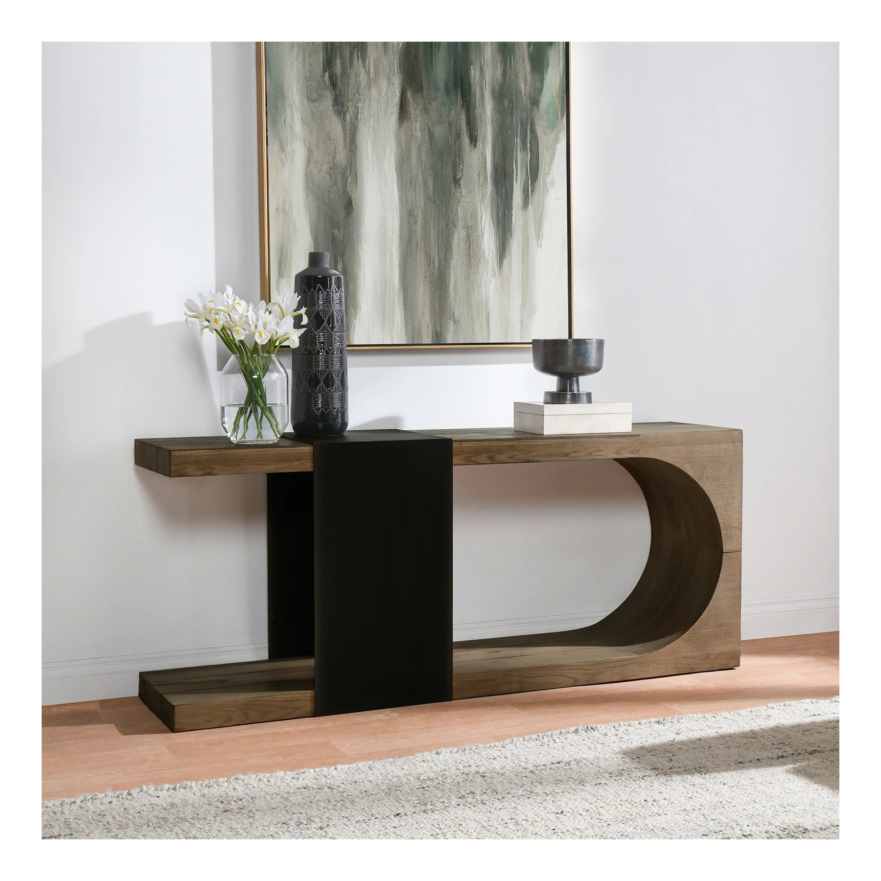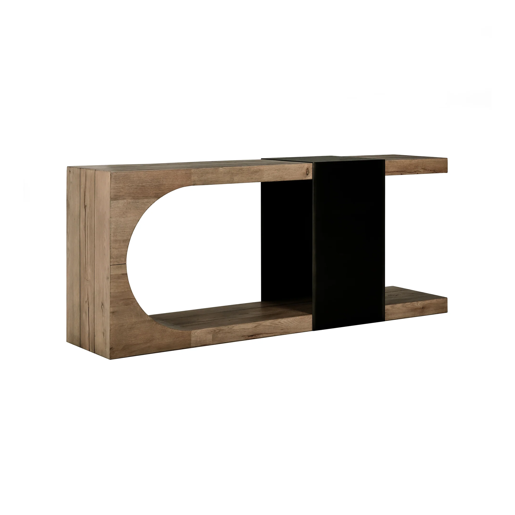 The Danica Reclaimed Occasional Set brings a striking modern presence to your living space. Constructed with FSC-certified reclaimed oak wood, the set emphasizes sustainable elegance. Its innovative design showcases open shelving paired with a bold black accent band, providing both visual appeal and practical functionality. The collection’s blend of natural materials and contemporary style makes it a versatile and eco-conscious choice for modern interiors.