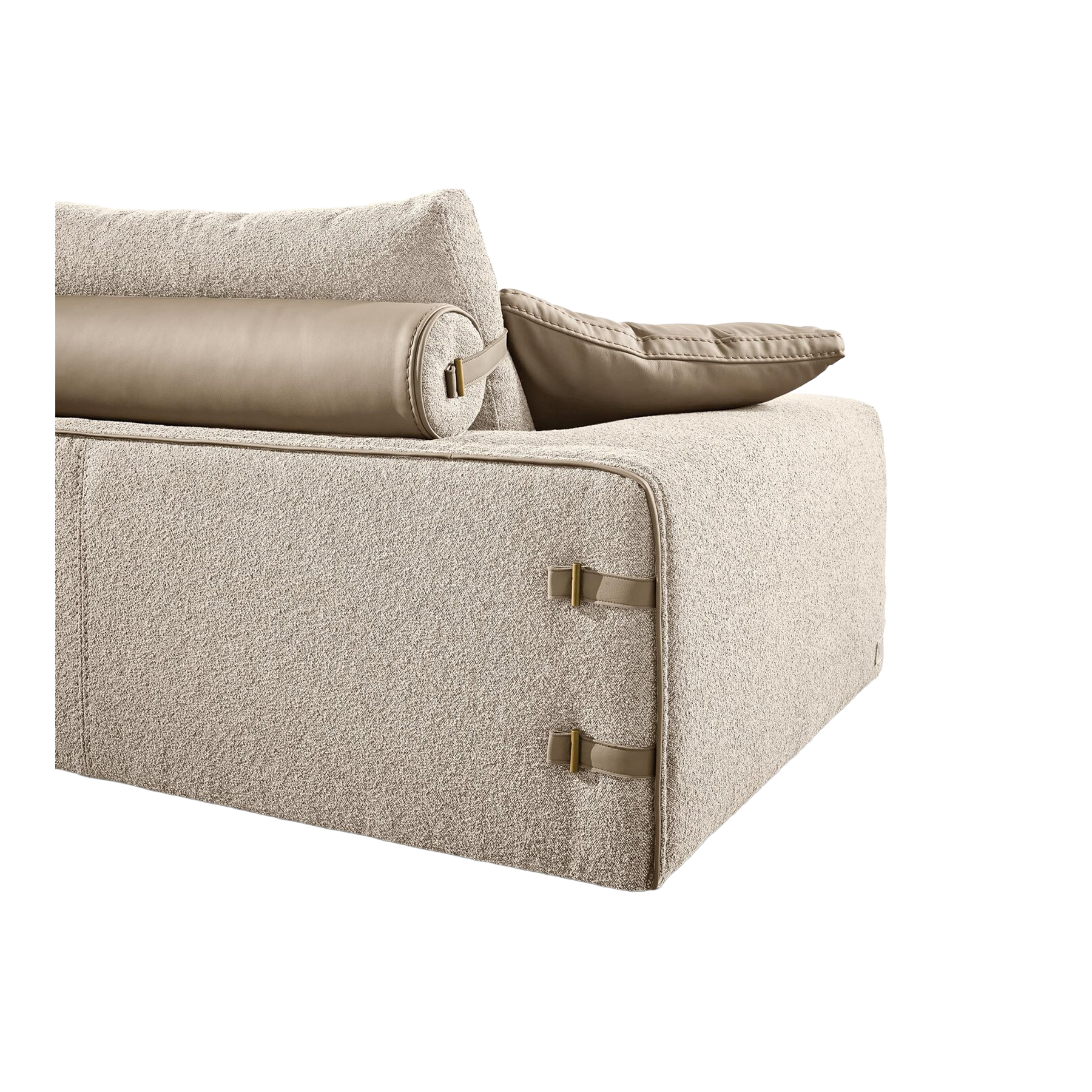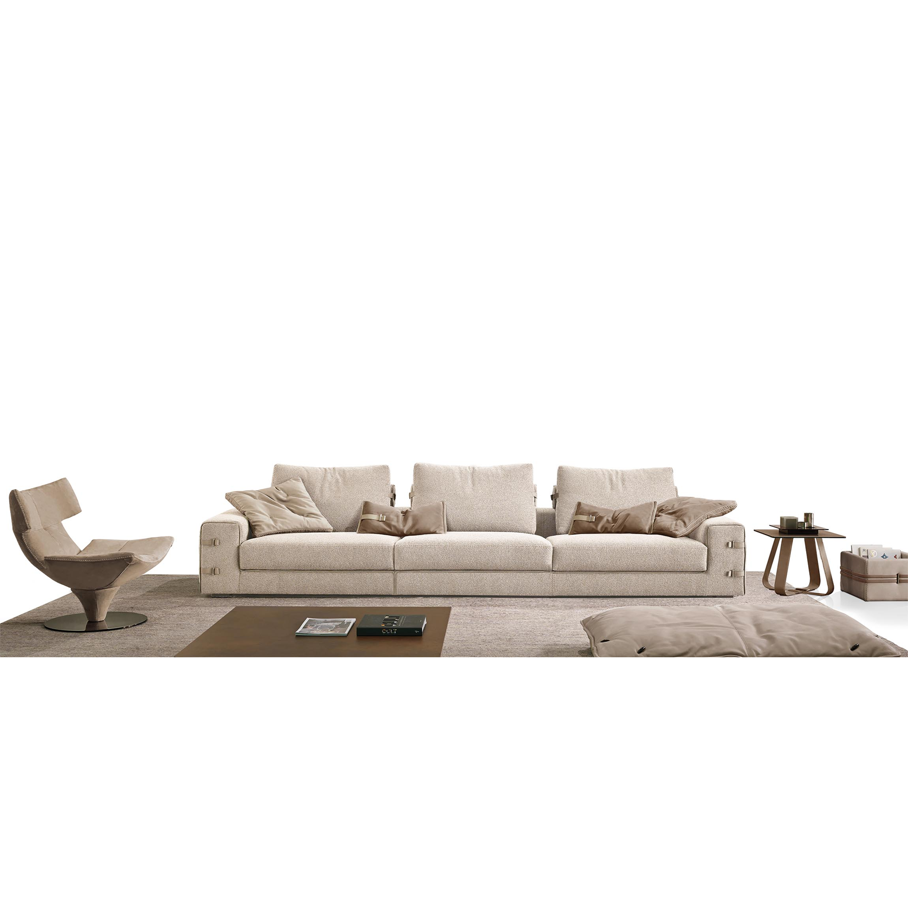 Gregory is unique leather design sofa in terms of size, worth and final finishing as well as being a spectacular showcase for our sartorial skills. Premium leather clings to each single part of the frame elegantly outlined by topstitching around the edges.