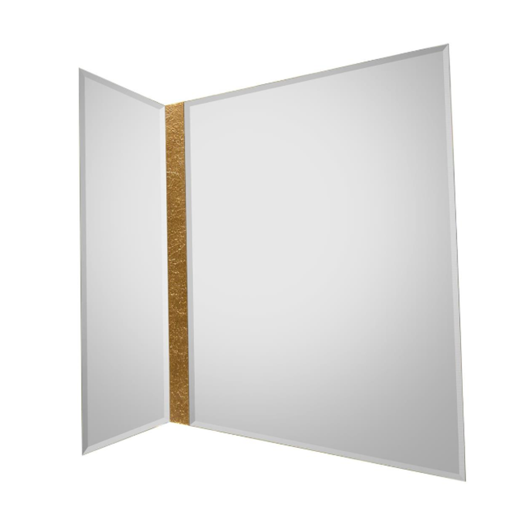 A frameless mirror divided with a textured stip finished inExotic Gold.