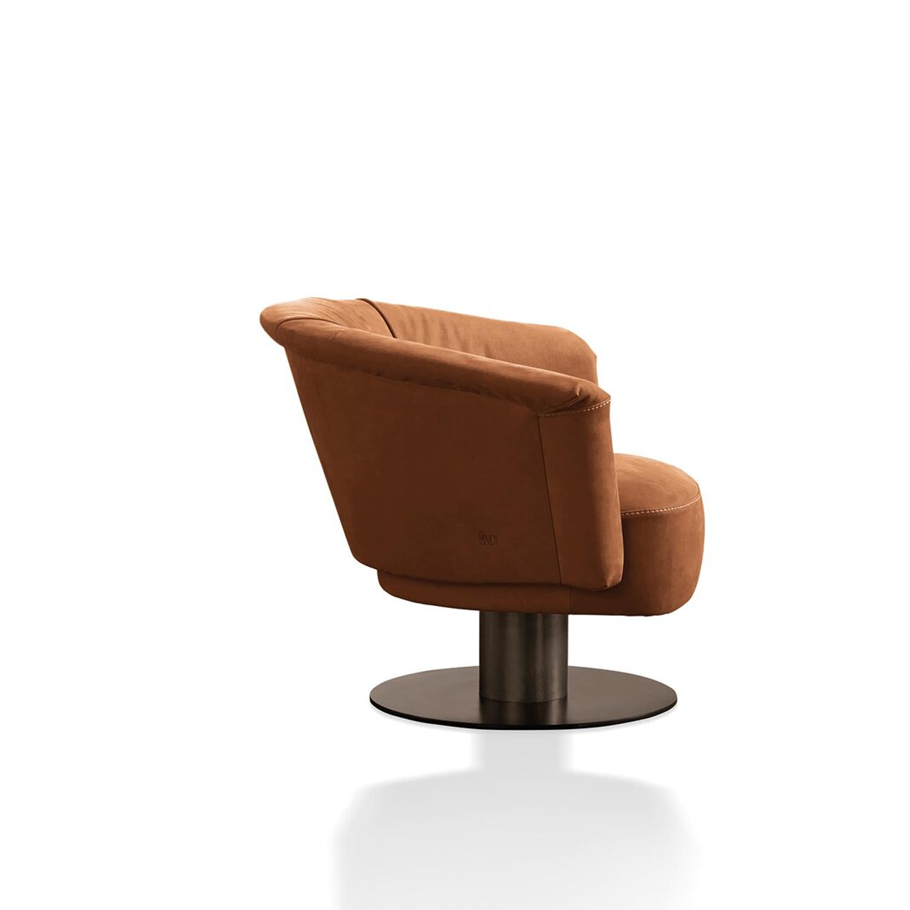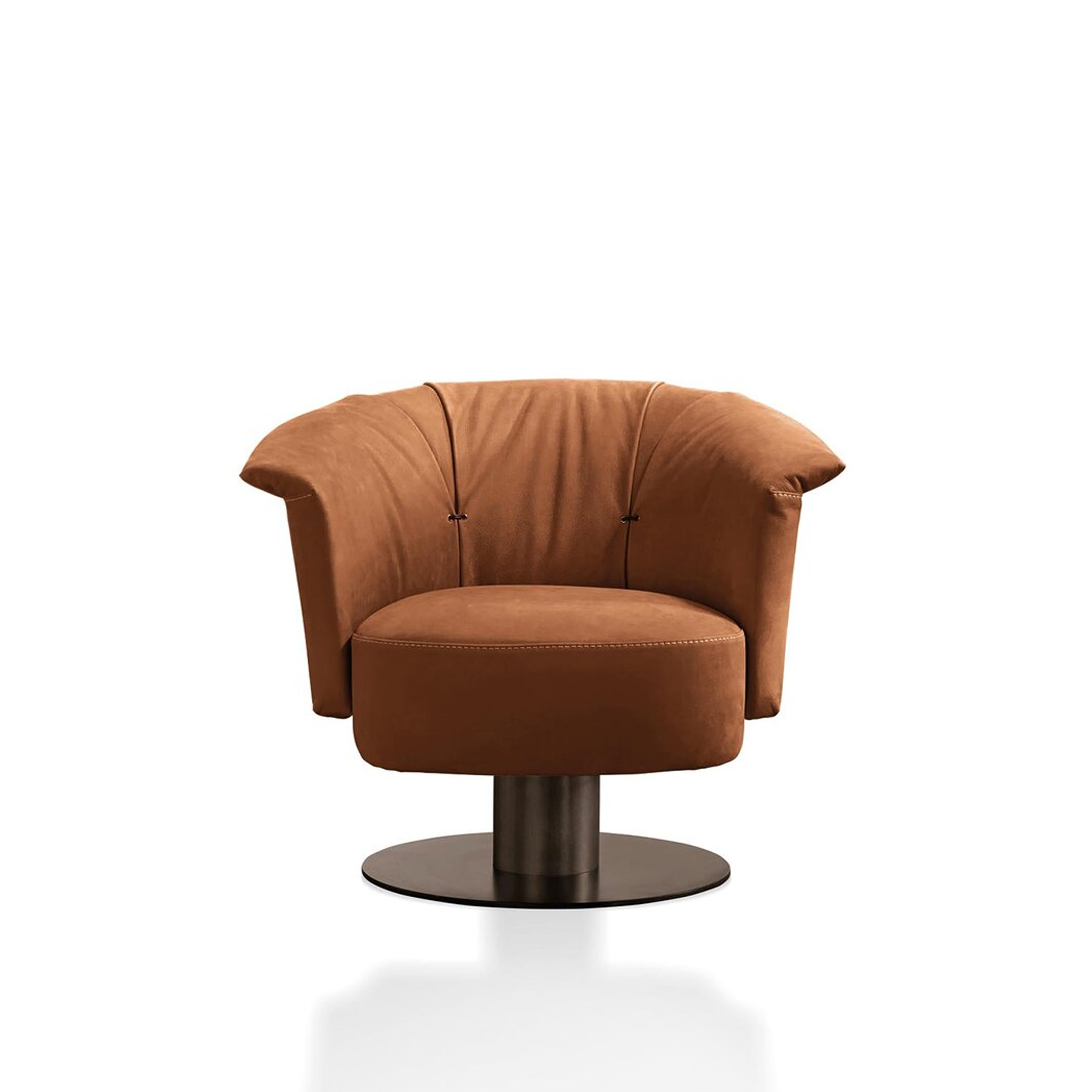 The leather armchair Luna to mind soft curves, rotundity and the various phases of the moon which throws back a different image according to our viewpoint. The wide backrest has an ergonomic design and offers supreme comfort. One sharp detail is the natural rubber tie pulled through a metal eyelet available in a finish that matches the base.