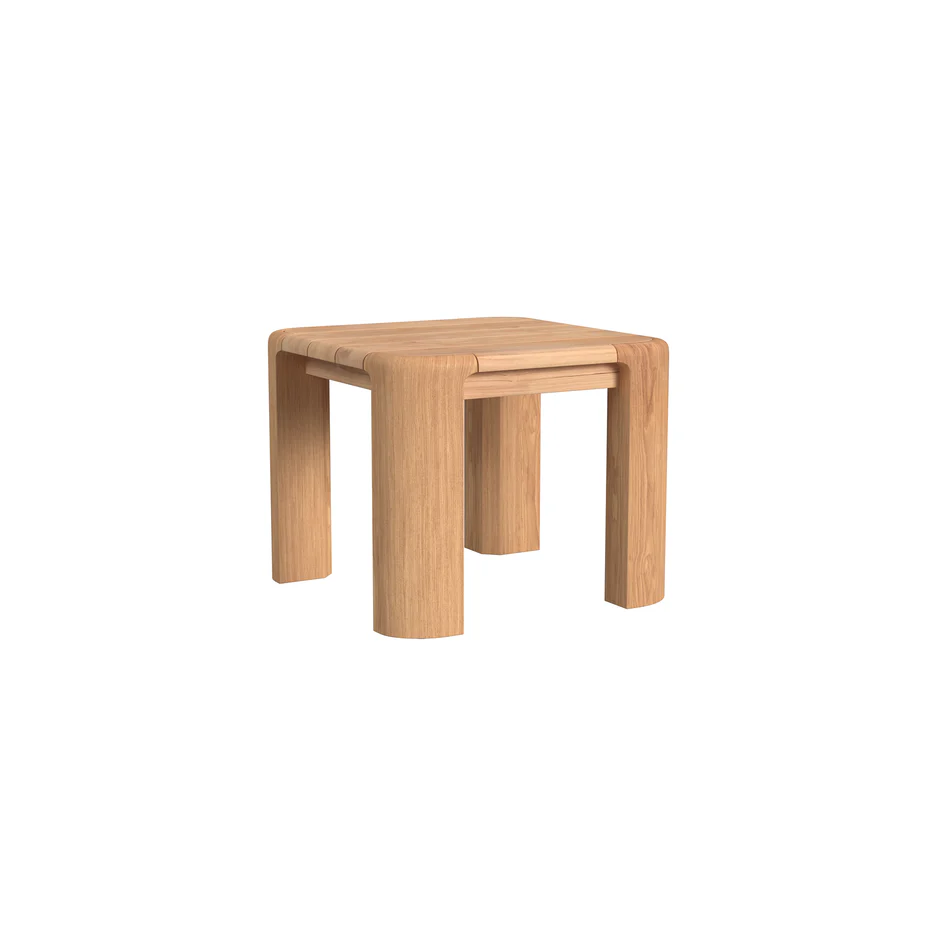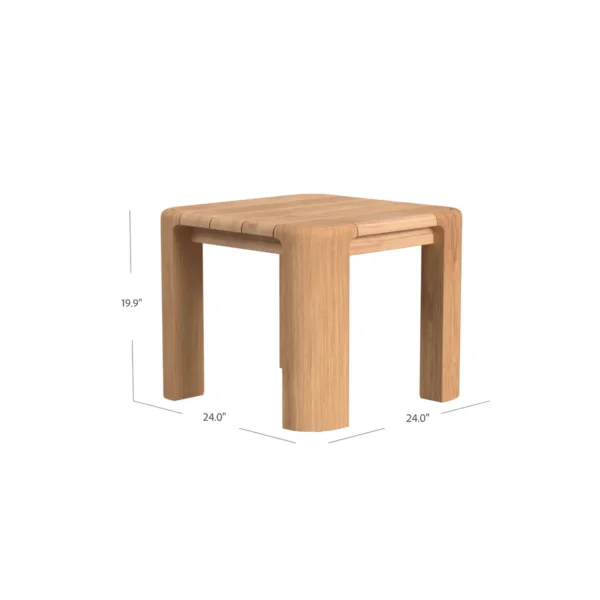 Add a touch of natural elegance to your outdoor seating area with the Natural Teak End Table. This table showcases the beauty of teak wood in a simple and contemporary design. Perfect for holding drinks or small items.