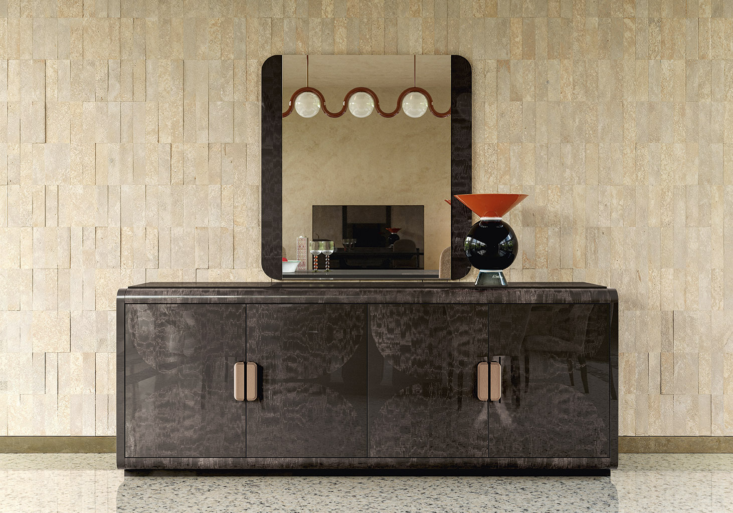 Indulge in luxury with the Nyx Buffet from the Nyx collection, crafted by renowned Italian furniture maker ALF Italia. Available in small or large, this buffet is made with a chocolate anigre high gloss inlay. Elevate your dining or living space with this elegant and functional piece.