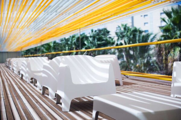 Offering a bold and comfortable spot for modern outdoor relaxation, the Solid Lounge Chair features a substantial, geometric form. It provides deep seating and a strong visual presence, embodying minimalist durability and contemporary style.