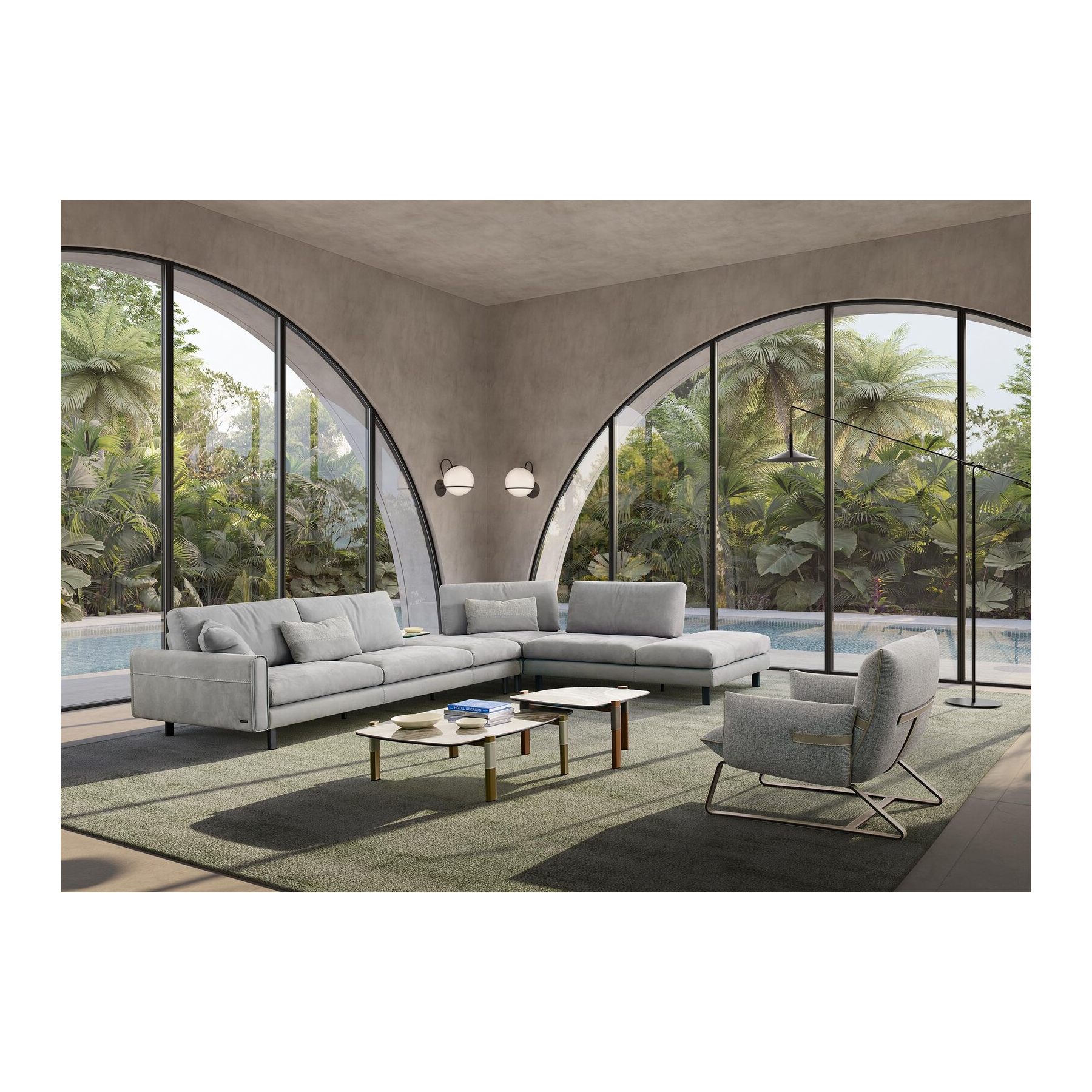 The Summer sofa provides functionality and design in equal doses, allowing you to customize it with the new units featuring elegant side tables in ceramic or marble so it can be adapted to any kind of décor or room size and you can create an invitingly refined environment.