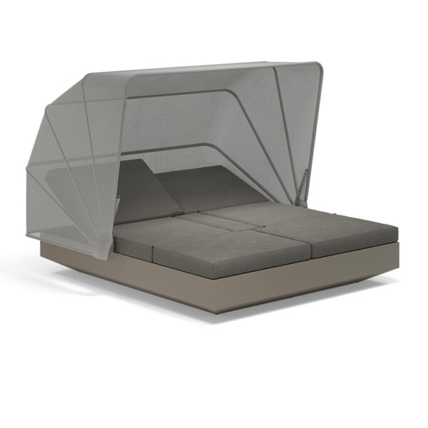 Experience the pinnacle of modular outdoor luxury with the Vela Daybed featuring 4 Reclining Backrests and Folding Canopy. Its expansive platform allows multiple users individual reclining comfort, while the integrated canopy provides elegant shade for a truly sophisticated outdoor retreat.