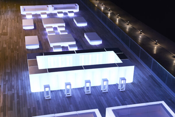 Define a modern outdoor bar area with the Vela Single Bar. Its clean, geometric design provides a stylish and functional surface for serving, embodying contemporary elegance for outdoor entertaining.
