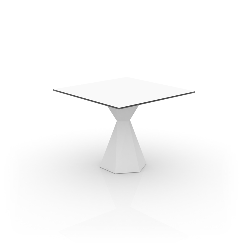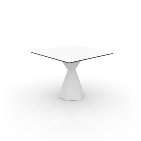 A generous table size with a dramatic geometric base, the Vertex Table 90 cm presents architectural elegance with a round or square HPL top. Ideal for modern patios, it offers ample space for outdoor meals and refined entertaining.