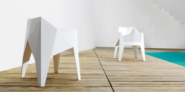 Experience modern comfort with a geometric twist in the Voxel Armchair. Its faceted, crystalline structure provides a unique visual texture and supportive seating, adding a contemporary edge to your outdoor dining or lounge area.